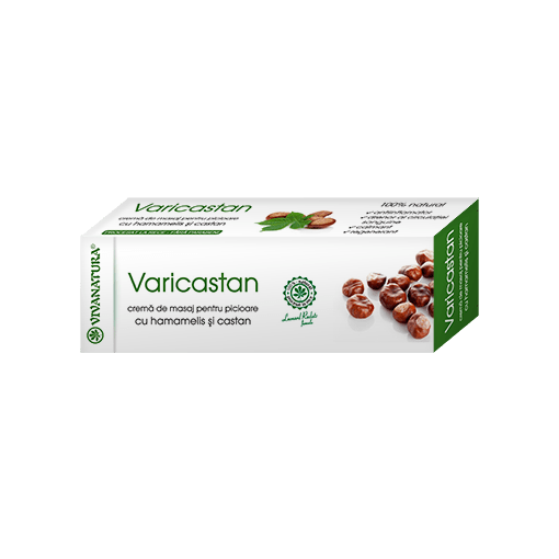 Crema de masaj pentru picioare, Varicastan conține hamammelis și extract de castan, substanțe recunoscute pentru proprietățile venotonice (de ameliorare a tonicității pereților venoși), vasoconstrictoare și vasoregulatoare, oferind rezultate de durată.