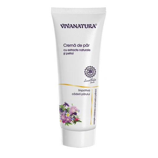 Crema împotriva căderii părului VivaNatura are efecte deosebite datorită componenței complexe de extracte din plante, uleiuri naturale şi o fracţie specială obţinută din petrol, care acționează sinergic pentru a întări și hrăni firul de păr. În Romania valoarea terapeutică a petrolului asupra părului este cunoscută din timpuri străvechi, iar acum asistăm la o revalorificare a tratamentelor tradiționale, pe baze noi, științifice. Crema este eficientă încă de la prima utilizare. Regenerează rădăcina firului de păr, oprește căderea acestuia, părul devenind astfel rezistent și sănătos.