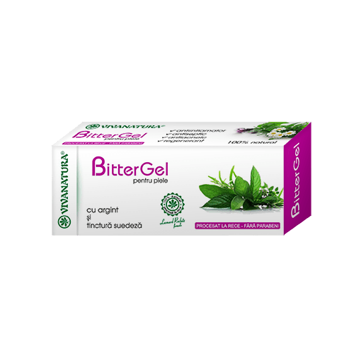 * Vivanatura vine în întâmpinarea unor astfel de probleme cu produsul său, special creat în acest scop, BitterGel – gel pentru piele. Multiplele rezultate benefice îl fac util în cazul acneei, arsurilor, degerăturilor, înțepăturilor de insecte, eczemelor, herpesului, zona zoster, diverselor infecții cu ciuperci ale pielii sau bacterii. Vindecă, de asemenea, negii și rănile, vânătăile, bătăturile, calmează mâncărimile și iritațiile pielii. Complexul de plante are efecte tonice și stimulatoare asupra țesuturilor, grăbind refacerea celulară.