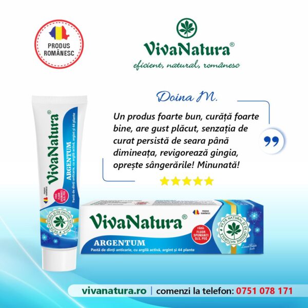Argentum – pasta de dinti naturală 99,5% cu argila activa, argint si 44 plante, fara fluor, 80 ml – Leonard Radutz formula – VivaNatura