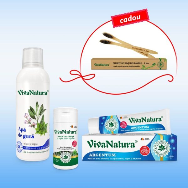 Descoperă ritualul complet de igienă orală naturală, creat de Laboratoarele VivaNatura. Acest pachet reunește trei produse, realizate din ingrediente active de origine naturală, fără fluor, parabeni, PEG, SLS sau coloranți artificiali. Ideal pentru întreaga familie, inclusiv pentru persoanele cu gingii sensibile sau afecțiuni gingivale.